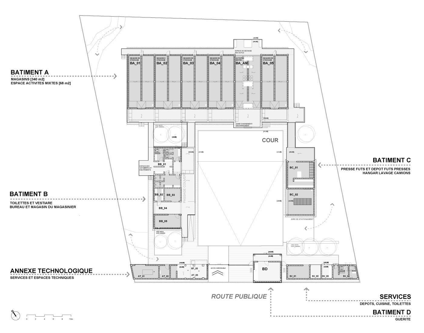 The project includes other secondary buildings, where various functions are concentrated: the warehouse manager’s office, the warden’s office, the deposit for crushed drums, shower and wc for the staff and other technical spaces.